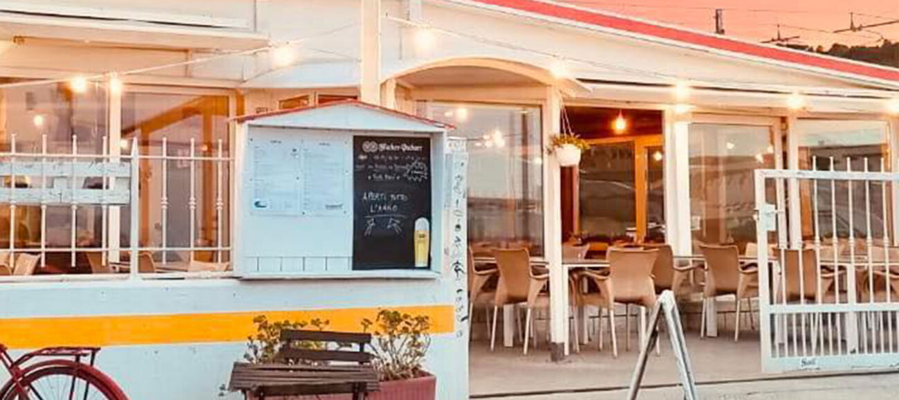 La struttura, che si trova a 20 metri dalla riva del mare (da qui il gioco di parole del nome), ha una terrazza esterna con vista sull’Adriatico e una sala interna in legno, riscaldata e accogliente: unendo le due location si arriva a un totale di circa 110 coperti.